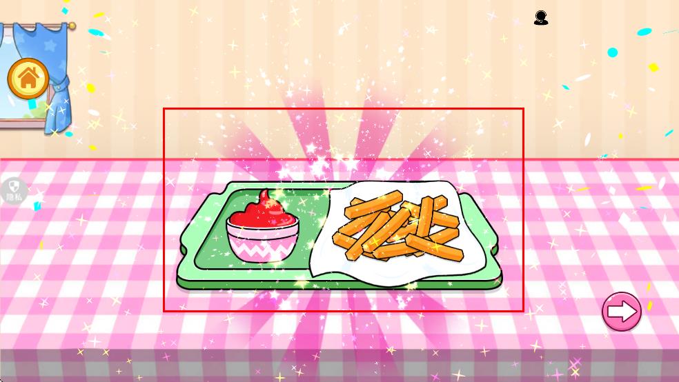 4、等待制作完成后,查看界面中呈现的成品薯条及配套酱料,确认制作流程结束。