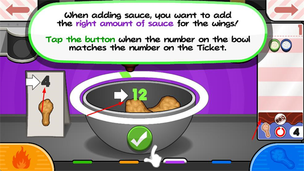 2、添加酱料时,需匹配票据上的数字与碗中数字,数字一致时点击按钮,精准控制酱料添加量。