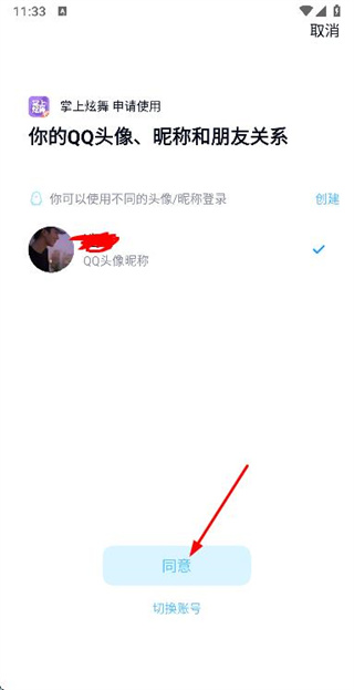 3、在QQ授权页面点击同意按钮,完成QQ账号登录掌上炫舞的操作。