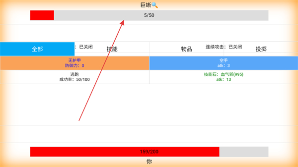 4、进入与巨狮的战斗界面,查看双方属性,利用现有物品与技能进行战斗,推进战斗流程。