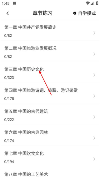 1、在导游资格证百分题库首页,点击章节练习选项,进入章节练习页面。
