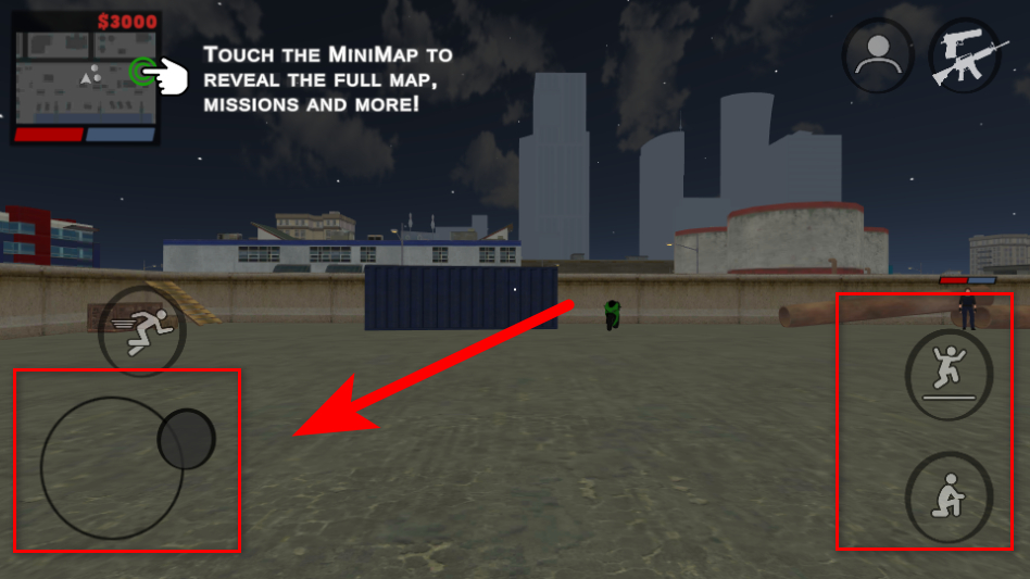 4、通过左侧的虚拟摇杆控制角色移动,右侧的动作按钮如跳跃、蹲伏调整角色状态,完成阵营对应的任务目标。