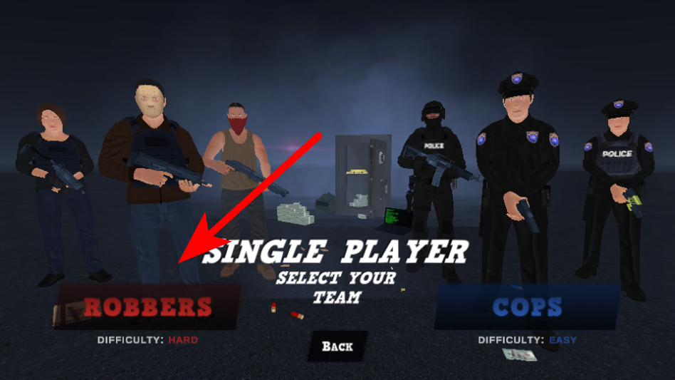 1、进入游戏后,在阵营选择界面点击ROBBERS劫匪阵营,该阵营难度为HARD,可开启劫匪相关任务。