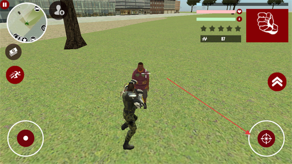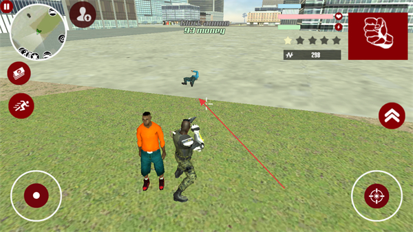 1、点击右侧攻击键,对敌方角色发起攻击,击败敌人后获取金钱奖励,提升游戏资源。
