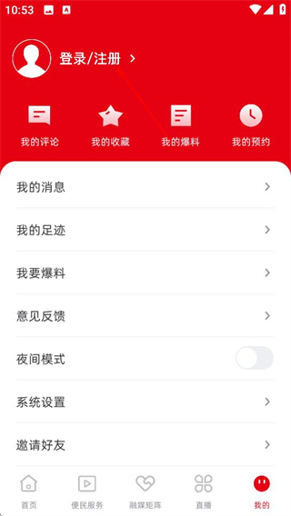 2、在个人中心页面,点击登录注册选项,进入登录页面。