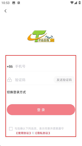 3、在登录页面,填写信息并勾选协议后,点击登录完成账号登录。