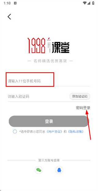 2、在验证码登录页面填写手机号,勾选协议后,点击获取验证码。