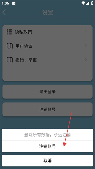 3、在设置页面,点击注销账号选项,弹出注销确认窗口。