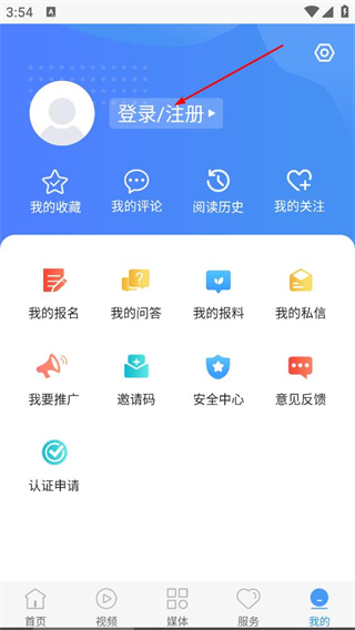 2、在个人页面中,点击登录/注册按钮,进入账号密码登录页面。