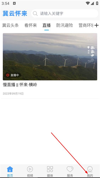1、在翼云怀来首页,点击底部的我的选项,进入个人页面。
