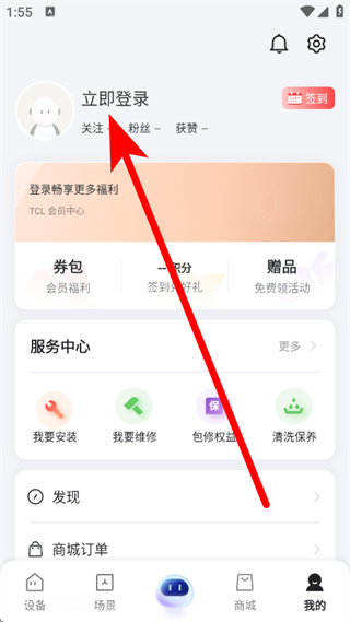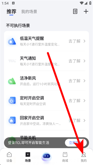 1、打开TCL商城,点击底部的我的,进入我的页面。