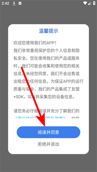 1、打开树洞倾诉,在弹窗中点击阅读并同意,进入应用首页。