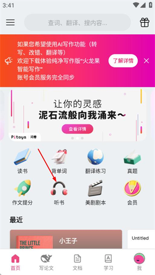 龙果是专注英语写作的智能工具,整合记笔记、写论文、写邮件等文字处理功能,支持灵活编辑记录,操作便捷,同时推送众多名著供自由阅读,适配读写场景,兼顾写作实用与阅读拓展,助力提升英语能力,满足学生、职场人士的英语学习需求。