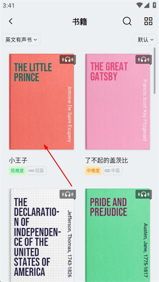 2、在书籍页面,点击目标书籍如小王子,进入该书的详情页面。