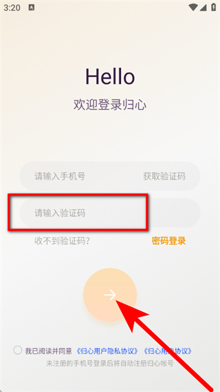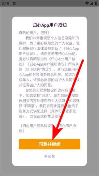 1、打开融创归心,点击同意并继续,进入登录页面。