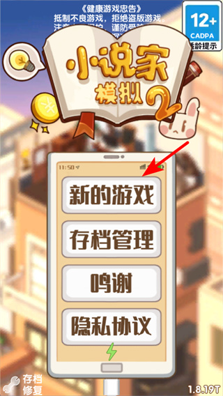 1、进入游戏界面后,点击新的游戏按钮,这是开启小说家模拟的关键操作,准确点击才能进入游戏流程。