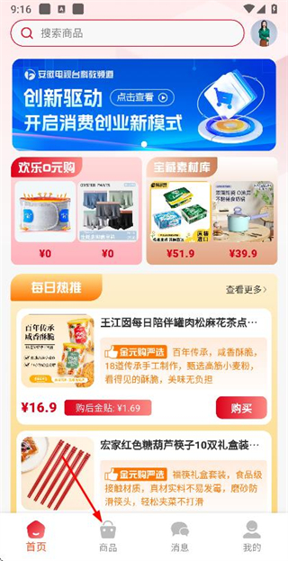 1、在首页点击底部的商品选项,进入商品列表页面。