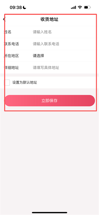 4、在地址页面,填写信息后,点击立即保存完成地址添加。