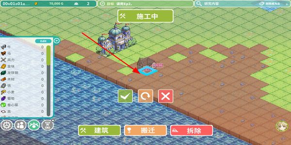2、选择建筑位置后确认施工,等待建筑完成,也可使用相关按钮调整建筑布局,合理规划城镇的设施分布。