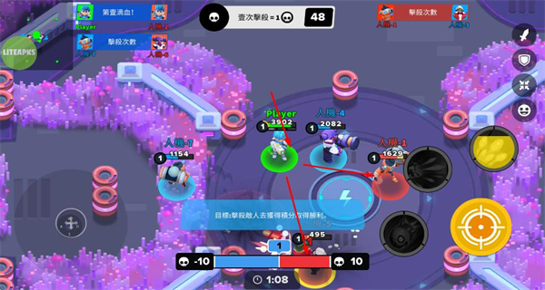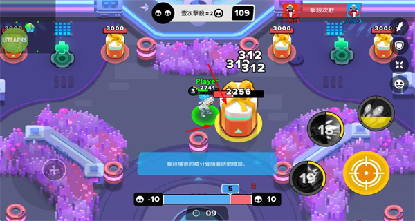 1、操控角色攻击其他玩家,击败对手后可获取积分,优先选择积分较低的目标能更高效积累分数。