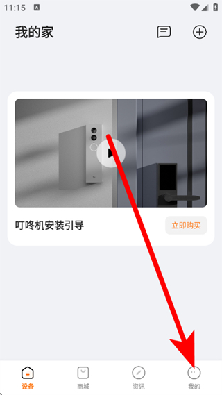 1、打开华为海雀,在我的家页面,点击底部的我的,进入我的页面。