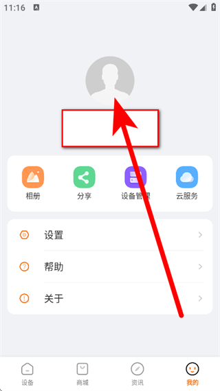 2、在我的页面,点击头像区域,进入个人中心页面。