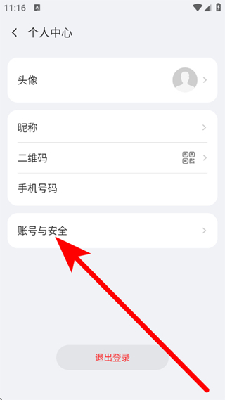 3、在个人中心页面,点击选择账号与安全,进入账号与安全页面。