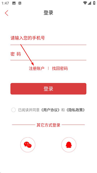 3、在登录页面,点击注册账户选项,进入注册信息填写页面。