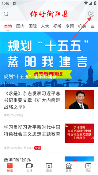 1、在你好衡阳县首页,点击右上角的个人图标,进入个人中心页面。