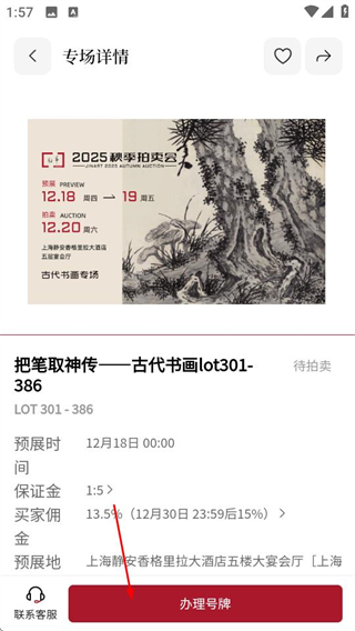 配备专属客服团队,针对艺术品拍卖相关问题提供专业解答,从号牌办理到出价规则全程指导,帮助用户快速熟悉拍卖流程,降低参与门槛,让新手也能轻松上手。