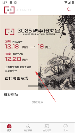 1、在敬华首页,点击古代书画专场的活动卡片,进入专场详情页面。
