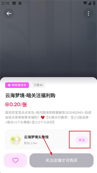 3、在商品详情页面,点击关注按钮关注店铺后,即可购买该商品。