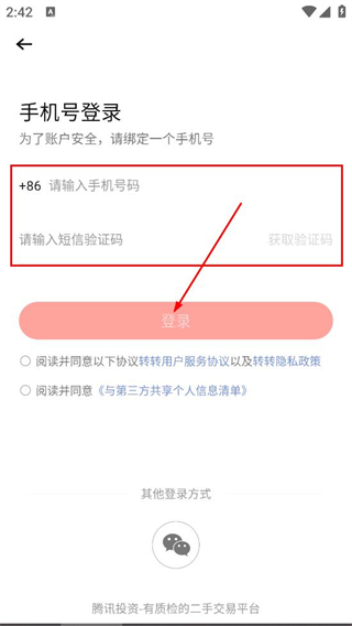 4、填写手机号,获取并填写短信验证码,点击登录,完成账号登录。