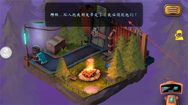 2、进入关卡场景后,界面上方将会出现对话框,显示糟糕,坏人把我朋友带走了!我必须救他们等信息,点击屏幕推进剧情完成救援任务。