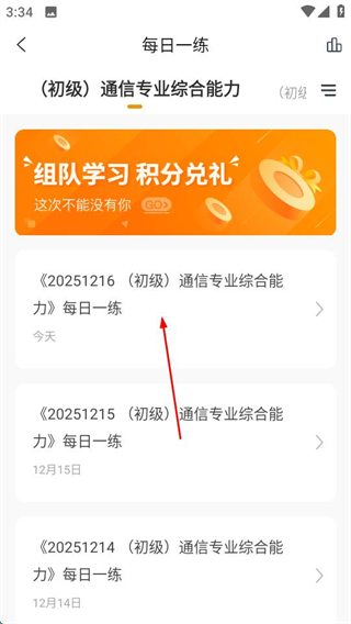 2、在每日一练页面,选择当日的练习任务,进入刷题页面。