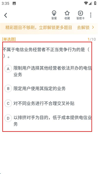 3、在刷题页面,即可开始作答该练习任务的单选题题目。
