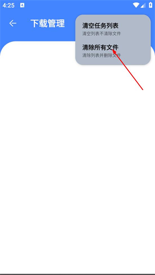 3、在弹出的菜单中,点击清除所有文件选项,完成下载列表及对应文件的清除操作。