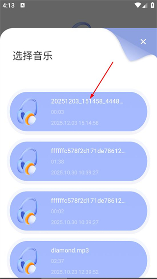 2、在选择音乐页面,点击目标音频文件,然后我们进入音频剪辑页面。