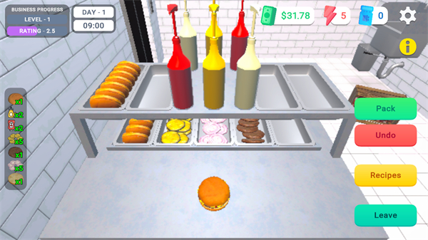 无固定风格限制,可完全根据自身喜好设计店铺布局与装饰,打造独一无二的汉堡店,可以让玩家在游戏中充分展现个人创意。