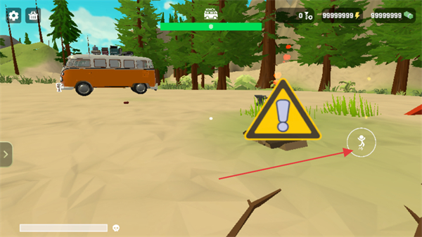 3、在场景移动过程中,可以点击右侧跳跃按键进行跳跃,留意黄色警示标志类的互动元素,靠近可触发对应的互动任务,辅助完成露营模拟的相关环节。