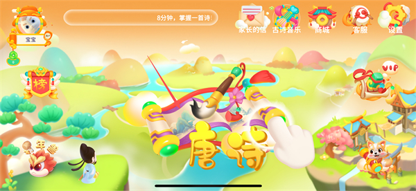 插画、卡通形象与互动玩法多维结合,将枯燥的唐诗学习变得生动有趣,有效激发孩子学习兴趣,帮助孩子在轻松氛围中积累知识,提升学习意愿。