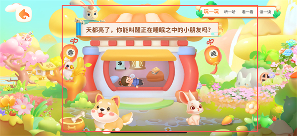 3、在春晓互动学习页面,参与叫醒小朋友的互动任务,开启古诗学习流程。