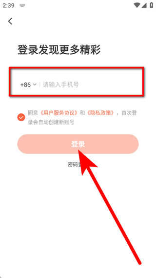 3、在登录页面,输入手机号,点击登录获取发验证码。