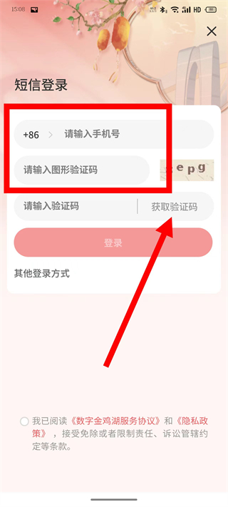 3、在短信登录界面,输入手机号,点击获取验证码。