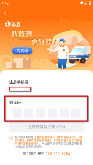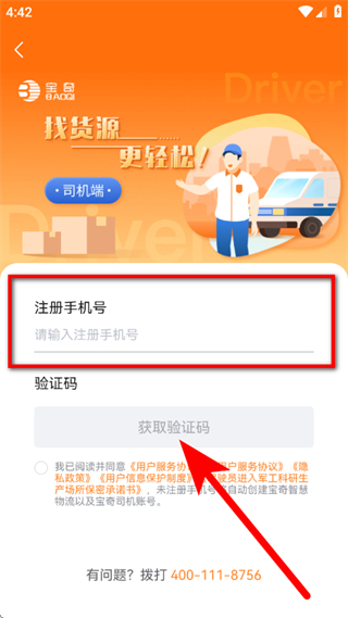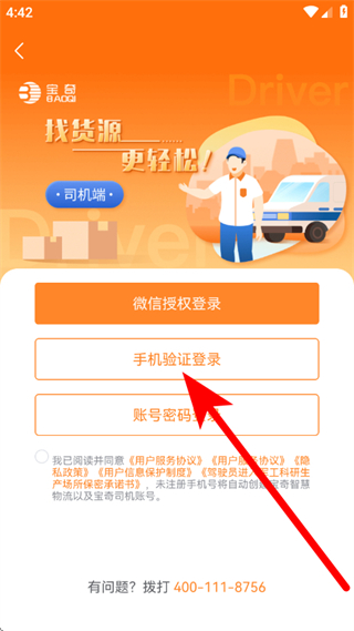 2、在司机端页面,选择手机验证登录,进入注册登录页面。