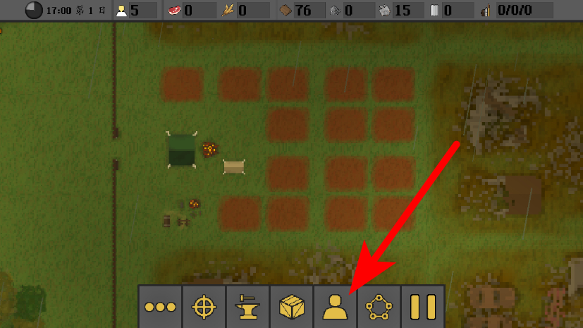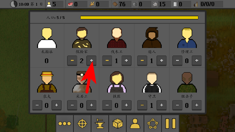 2、在资源收集后,点击底部功能栏的人员图标,进入职业分配界面。