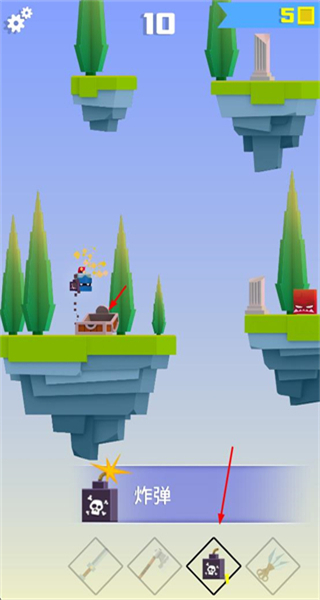 1、操控角色在平台间跳跃,使用道具攻击敌方单位,同时收集场景中的宝箱获取资源与奖励。