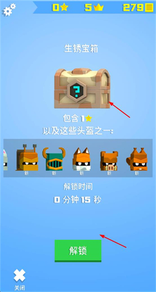 3、获取宝箱后,点击解锁按钮开启宝箱,可获得星级奖励与外观道具,解锁更多游戏内容。