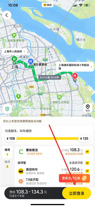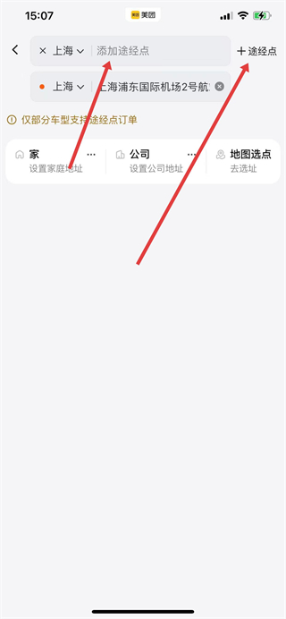 3、添加完成后,页面会显示包含途经点的完整行程路线,确认无误后选择合适的车型并下单即可。