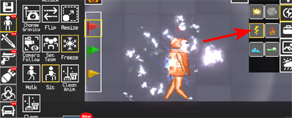 2、选择红色箭头指向的电击按钮,能让角色产生电击特效,体验不同的互动效果。